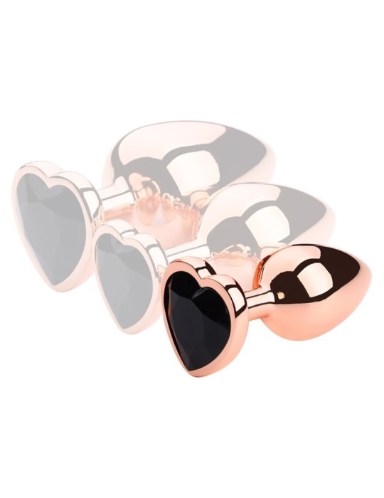 Le plug bijou Gold Heart S est un sextoy composé d'une couleur rose doré. Le bijou est noir et en forme de coeur. La longueur insérable est de 6 cm et la largeur est de 2.7 cm. En métal