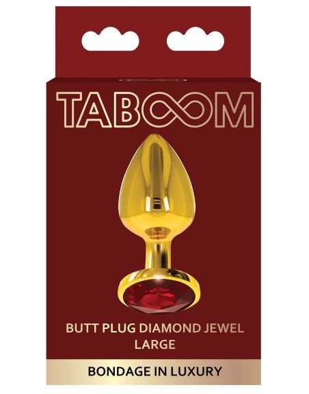 Ce plug bijou anal doré est un sextoy de marque Taboom idéal pour mettre en valeur l'anus. Il est conçu avec une forme élégante et une belle couleur dorée.Avec l'extrémité bijou rouge. La longueur insérable est de 8cm. La largeur est de 4cm. Avec une surface lisse. En métal