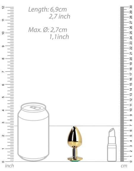 Le bijou anal Round Gem est un sextoy proposé dans sa version doré et vert avec le bijou rond émeraude. La longueur insérable est de 6 cm. La largeur est de 2.6 cm. En aluminium (poids de 50 grammes).