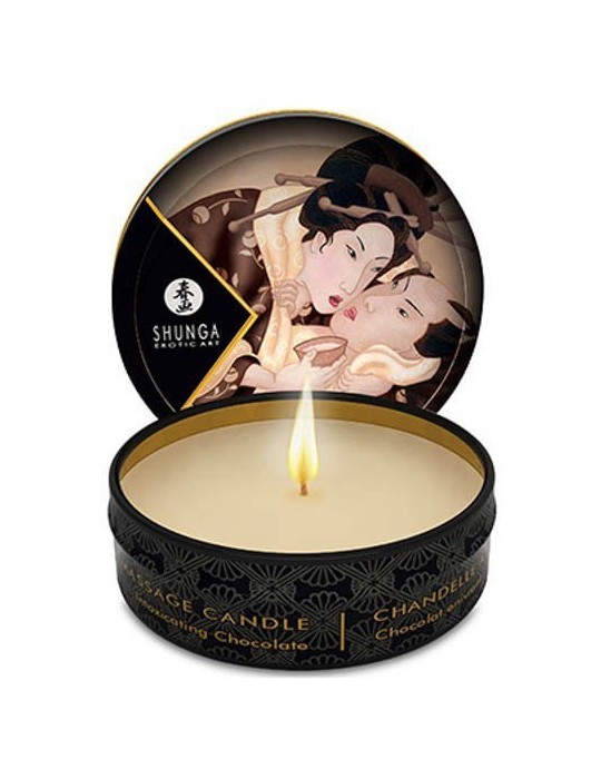 La bougie de massage Shunga est ici dans sa version Chocolat. Elle est originale et permet de créer une ambiance excitante et gourmande.L'arôme chocolat est un aphrodisiaque et donne de l'envie.L'huile (20 minutes après avoir éteint la flamme) s'applique sur le corps pour effectuer les massages et relaxer le partenaire.Ambiance romantique parfaite pour moments intimes