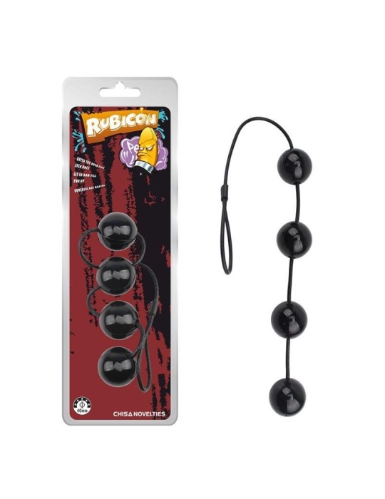 Les boules anales Rubicon S sont conçues pour permettre des plaisirs excitants et funs.En effet, le sextoy se compose de 4 boules de 4cm de diamètre qui s'insèrent une par une.La longueur est de 25cm. Avec un cordon élastique. Fabriqué en PVC