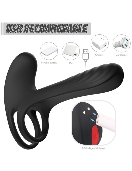 Cet accessoire est conçu pour se placer sur le pénis et donner des sensations encore plus importantes pour les deux partenaires. La partie vibrante mesure 9cm de longueur. Elle possède une épaisseur de 1.5cm. Les anneaux de 30mm se placent à la base du pénis. Avec 9 modes de vibrations