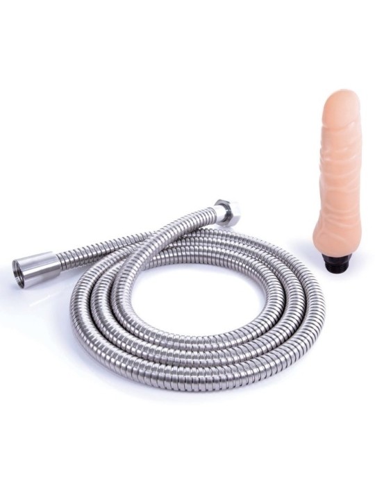 Tuyau de lavement composé d'un gode réaliste de 12 x 3 cm.Flexible en métal (1 mètre) et gode en silicone