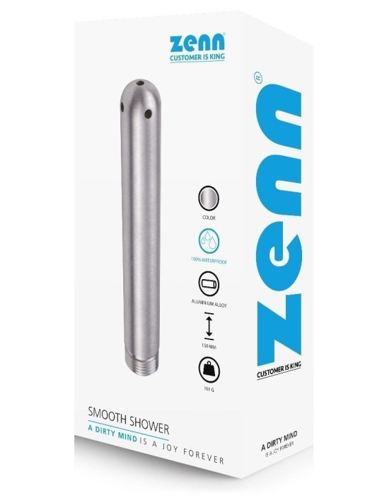 Cet embout de Lavement SMOOTH SHOWER a été conçu avec : une longueur d'insertion de 14 cm une largeur de 2.1 cm 5 trous surface lisse adaptable au tuyau de douche En aluminium