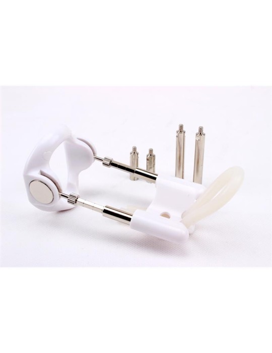 Cet accesoire de pénis est un extenseur de pénis mécanique.Il se positionne sur le sexe et permet un agrandissement progressif du sexe masculin