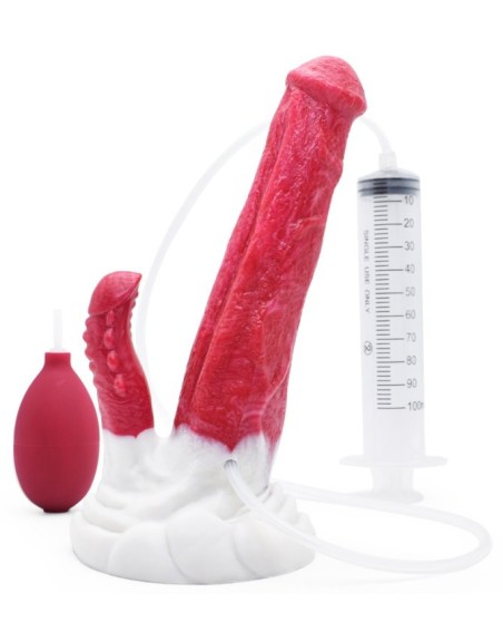 Ce gode éjaculateur est un sextoy conçu avec une forme monster.Il permet de simuler une éjaculation grâce à la possibilité de projeter un liquide (par exemple du faux sperme).