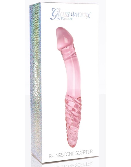Gode en verre Rhinestone Scepter 23 x 3.6cm Rose