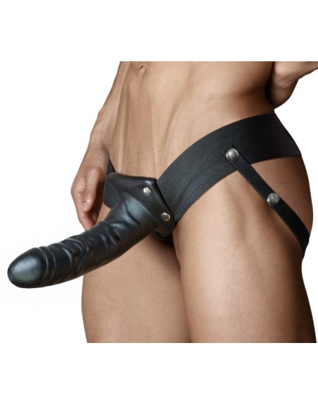 Apportez plus d'intensité et de durée à vos rapports sexuels avec le gode ceinture Always Ready noir. Il soutient l'érection et augmente la taille du pénis. Il est constitué de : sa ceinture élastique, ajustable, confortable à porter son gode creux de 16.5 x 4.7cm insérables et son gland large de 4cm et son canal d'introduction du pénis de 11.5 x 3.8cm.