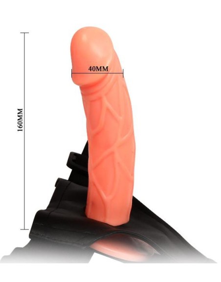 Le gode ceinture Strap Super Belt est composé d'une longueur de 15cm et d'une largeur de 3.8cm.Il est creux afin de placer le sexe à l'intérieur (environ 9cm). Le harnais-ceinture est élastique et ajustable. Gode en PVC