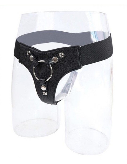 Ce harnais pour les godes ceinture est composé de : 3 anneaux en métal de 38, 45 et 50mm de diamètre la ceinture élastique à mettre autour de la taille. En simili