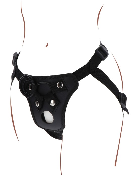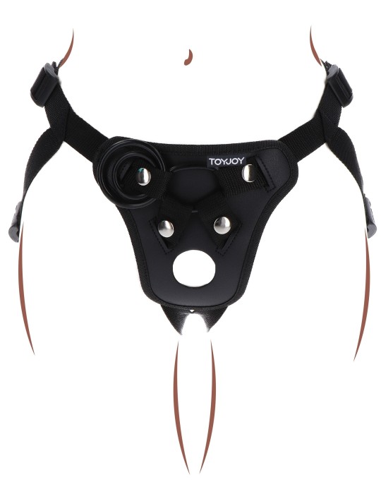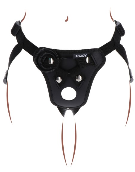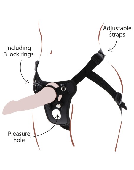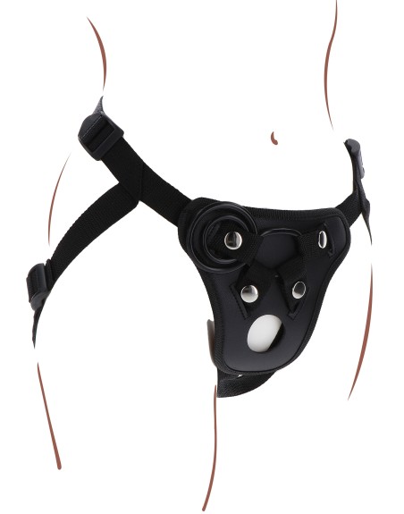 Ce harnais pour Gode-ceinture est idéal pour faire tenir un sextoy et s'amuser.Les sangles sont ajustables (en polyester).Avec 3 anneaux de 35, 45 et 50 mm pour placer facilement un dildo (souvent avec base ventouse). Un trou supplémentaire est prévu sur le harnais. Gode non inclus