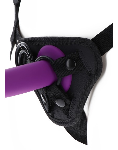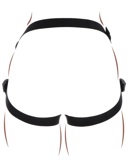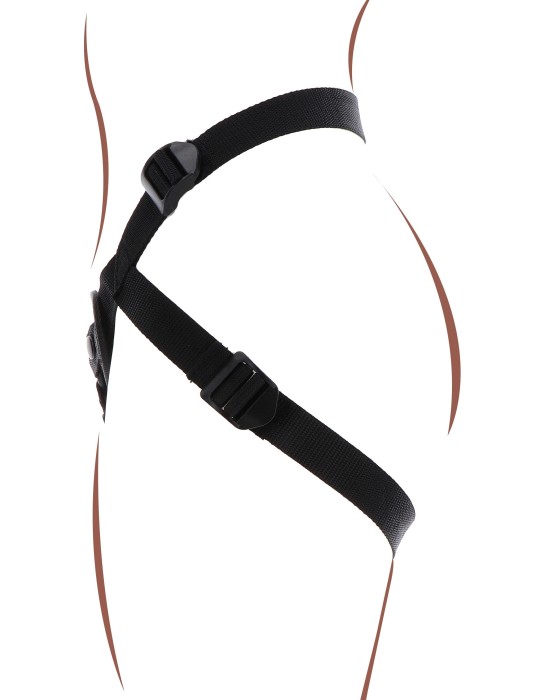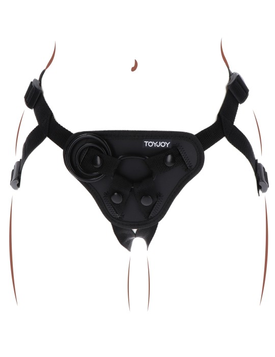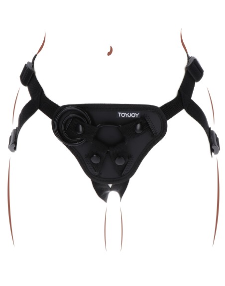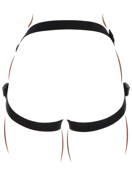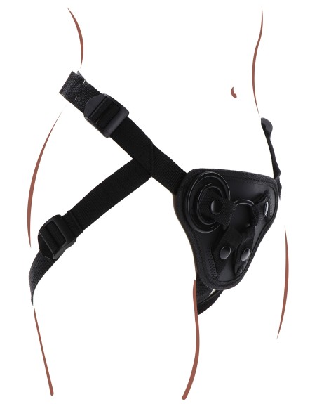 Harnais pour placer un gode et s'amuser.3 anneaux de 35, 45 et 50 mm de diamètre afin de dimensionner en fonction du sextoy choisi. Compatible avec les godes avec des ventouses. Sangles ajustables. Gode non inclus. 100% polyester