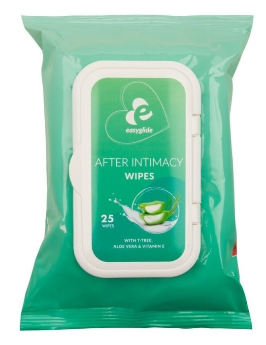 Lot de 25 lingettes nettoyantes pour l'hygiène après les relations sexuelles.Elles sont enrichies en Aloe Vera et Vitamine E.Effet rafraîchissant et douceur.