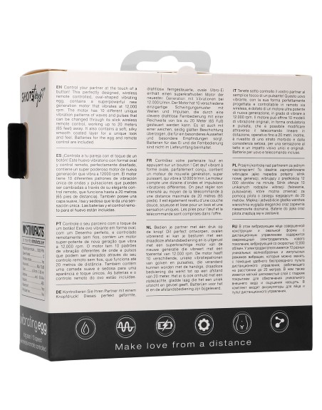Composition : ABS Dimensions : Oeuf : 9 x 3.4cm Télécommande : 5 x 3cm Caractéristiques : Zéro phtalate 10 modes de vibration progressifs Waterproof Télécommande sans fil Piles fournies Précautions d'emploi : Tenir hors de la portée des enfants Conserver à l'abri de la chaleur Nettoyer avant/après usage Compatible avec tous les lubrifiants