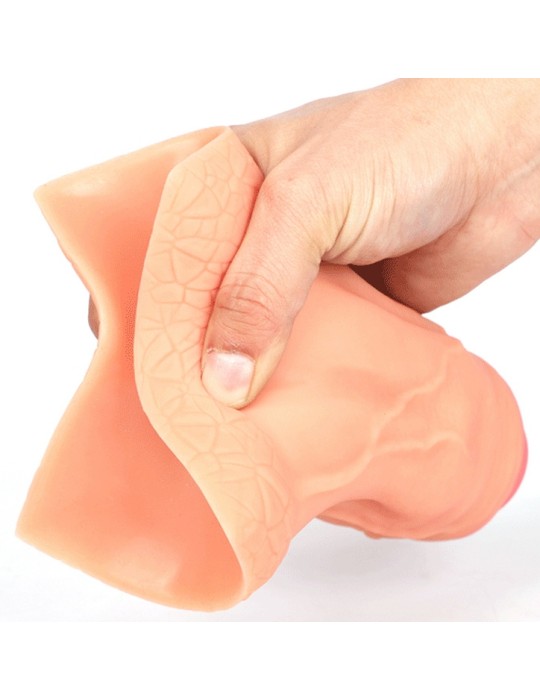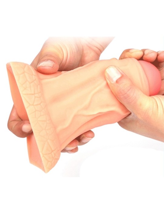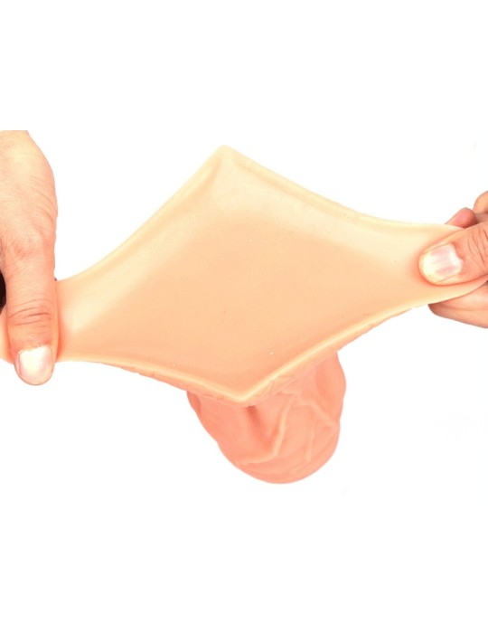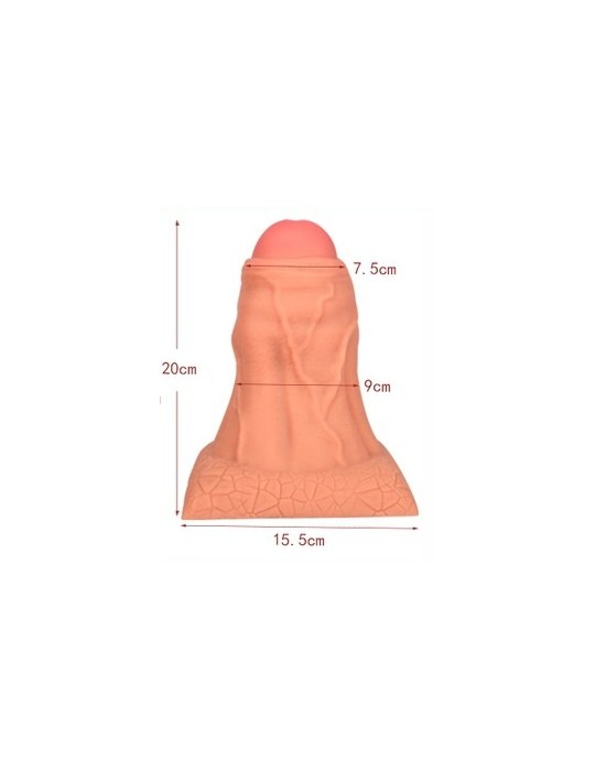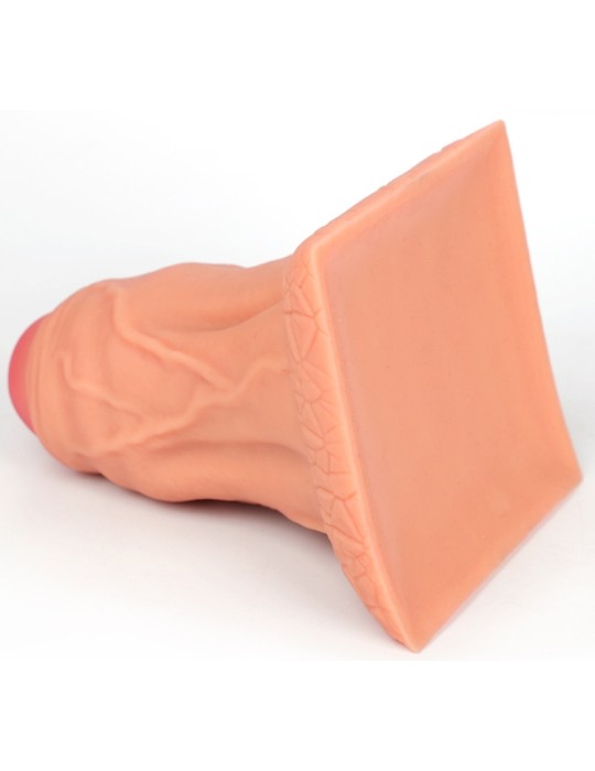 Le plug Overdick L possède une forme de pénis avec le gland partiellement recouvert du prépuce et une surface veinée. La longueur insérable est de 17cm.La largeur va de 4 à 11cm. Avec une base plate et servant de ventouse. Fabriqué en silicone