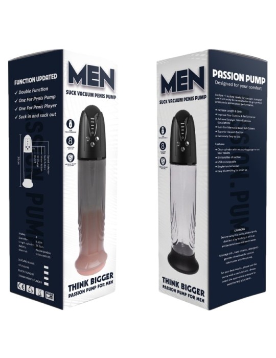 un tube transparent gradué de 20cm de longueur et de 6cm de largeur 8 modes de succion et vide d'air automatique un étui souple pour faire des mouvements de masturbation.Recharge USB