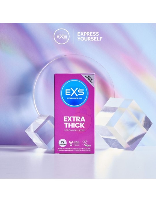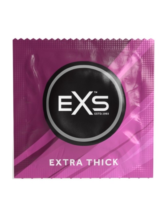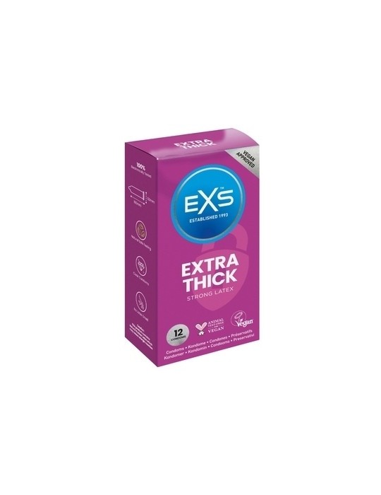 Ces préservatifs de la marque EXS sont plus épais que les préservatifs standards. Ils permettent d'assurer une protection optimale lors des pénétrations intenses. L'épaisseur est de 0.082mm. La longueur est de 19cm. La largeur est de 5.6cm.Préservatifs en latex