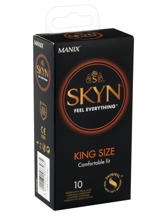 Préservatifs sans latex Manix de la gamme Skyn.Ils sont ici dans leu version Taille large (19cm de long pour 56mm de large) Ils permettent une aisance et un bon confort pendant l'acte sexuel.Ils sont lubrifiés et ne contiennent aucun produit d'origine animale. Parfaits préservatifs Révolutionnaires!