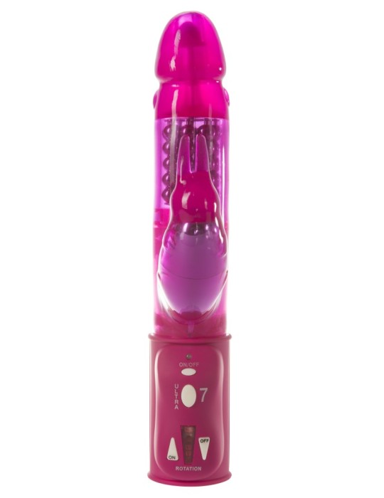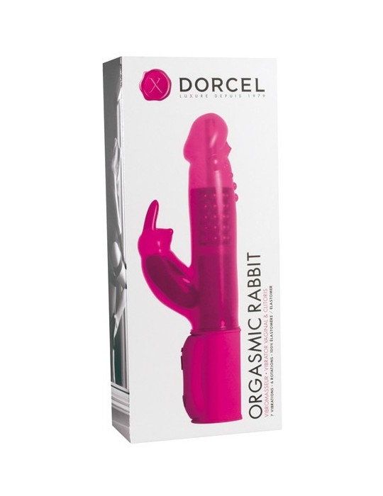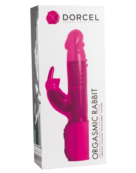 Ce Rabbit Orgasmic est proposé par la marque Dorcel.Il s'agit d'un sextoy avec deux fonctions : insertion avec le dildo de 12cm de longueur et de 4cm de largeur. Tête pivotant et billes rotatives (6 modes) stimulation avec le Rabbit venant frotter contre le clitoris et donnant des sensations intenses (7 modes de vibrations). Fonctionne avec 4 piles AA (non fournies)