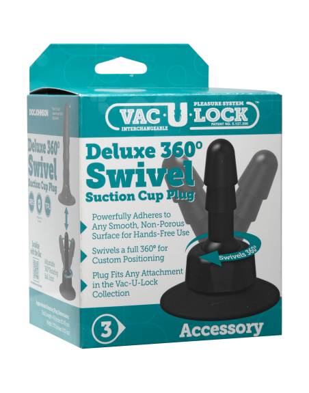 Cet embout VAc-U-Lock est un accessoire qui pivote à 360° et permet de jouer plus facilement avec les sextoys.Il se compose: d'une embout de 8cm de longueur d'une base de 10cm servant de ventouse. L'accessoire se place sur une surface plane( sol ou mur). Idéal pour jouer dans la salle de bain par exemple.Fabriqué en plastique ABS et TPU