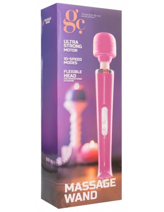Ce mega wand de la marque GC est un sextoy rose conçu avec une tête flexible de 6cm de largeur.Il permet des sensations très intenses grâce aux 10 modes de vibrations qui se diffusent au plus près des zones érogènes. Longueur totale de 32cm.Niveau sonore 55dB. Branchement sur secteur